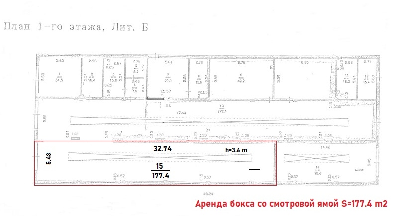 "Аренда помещения. Нижний Новгород. Автозаводский район. Молодежный проспект. Предлагается в аренду теплое помещение со смотровой ямой. Общая площадь 177.4 кв.м. Помещение часть большого цеха. Расположено на охраняемой территории. Въезд по пропускам. Размер ворот 3.5 метра на 3.5 метра. Высота в помещении 3.6 метра. Раньше использовалось как ремонтная зона для автобусов. Сдается от юридического лица. УСН. НДС 5%. Дополнительно оплачиваются эксплуатационные услуги (52.5 рубля за кв.м.) и электрическая энергия."